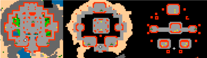 There are three statues. One is to the left, another to the right, and one at the top of the castle. Markers were made at the statues' locations. Click all of them and return to the NPC.